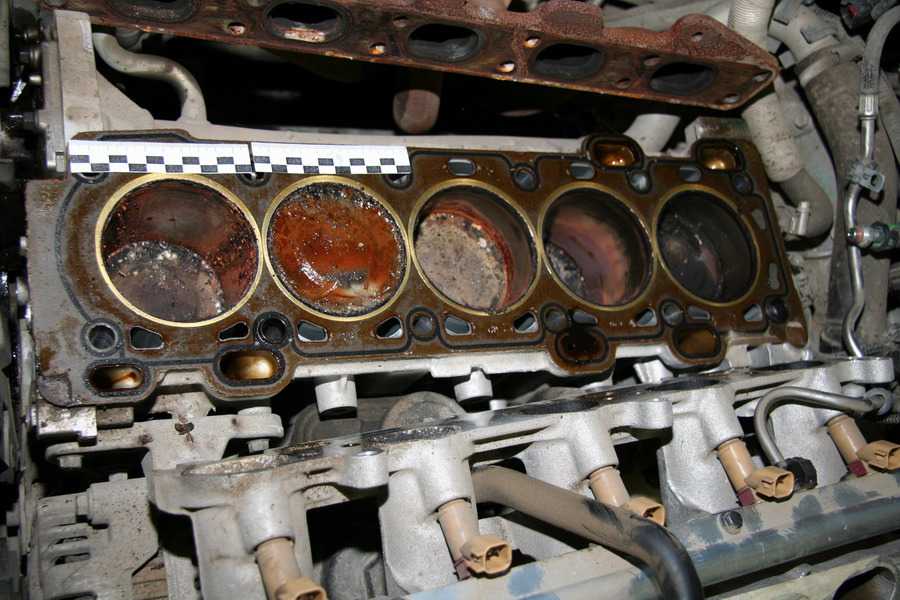 Чаще всего вода попадает в цилиндры через воздухозаборник, то есть извне. Автомобиль заезжает в глубокую лужу, вода проникает в воздухозаборник и достигает цилиндров. Однако бывают случаи, когда в подпоршневое пространство попадет антифриз из системы охлаждения. Это происходит в случае прогорания прокладки ГБЦ.
