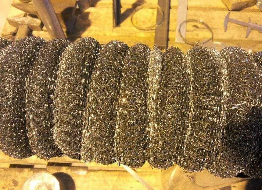 Далее надо резонатор чем-то набить, для этой цели отлично подойдут обычные жестяные мочалки.