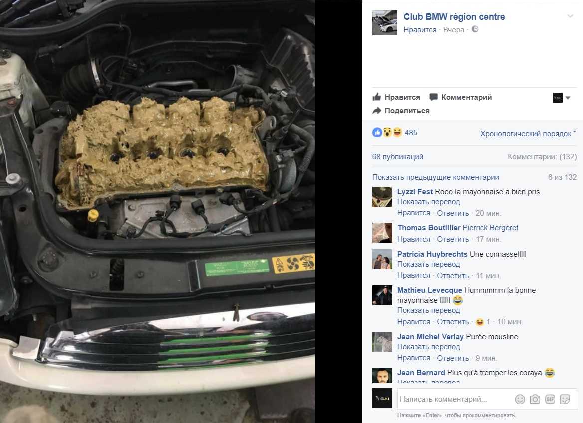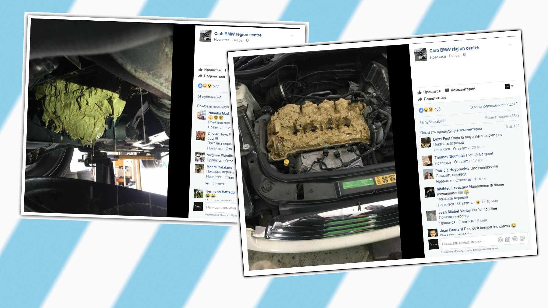 Эти фотографии мы нашли во французской группе BMW на Facebook. Вчера в этой группе весь мир увидел необычные фотографии двигателя BMW, на клапанной крышке которого запечатлена непонятная масса субстанции, которая напоминает пережаренные бобы.