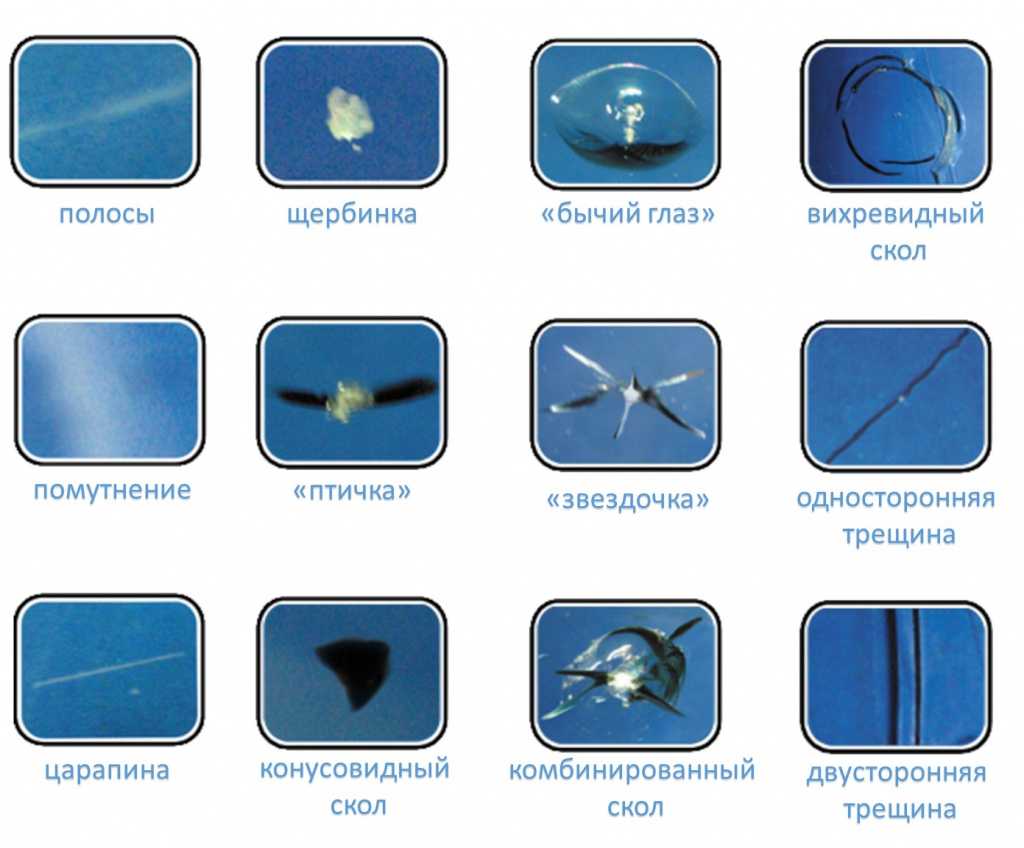 - Дефекты, расположенные перед лицом водителя и закрывающие ему обзор, требуют полной замены стекла, а не ремонта.