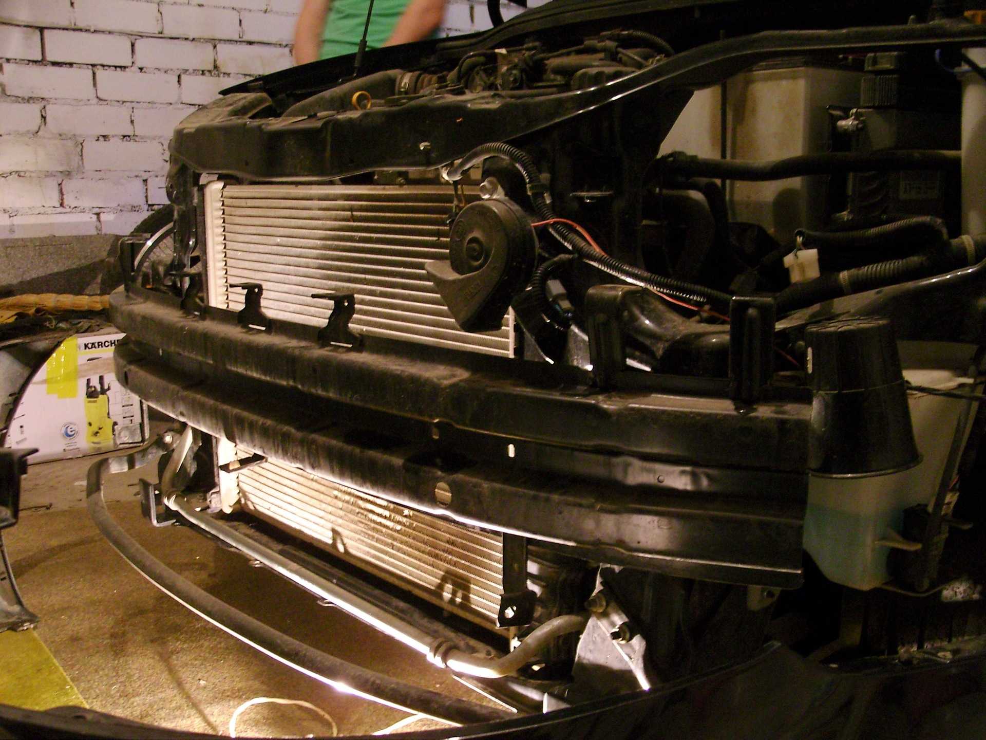 Далее нужно поставить бампер обратно и вернуть на свои места саморезы с головкой на 7 так, чтобы стык бампера и крыло встал как раньше, а все подкрылки попали в пазы на бампере. Теперь нужно вернуть 4 пистона на облицовку радиатора. И в конце затянуть гайки лонжеронов.