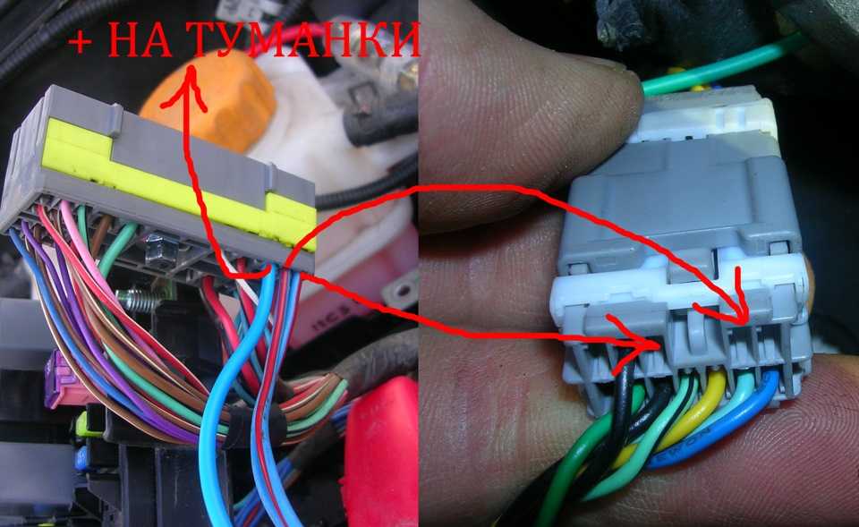Установка противотуманных фар требует далее в место, обозначенное на фото протянуть управляющий провод на 60 см.