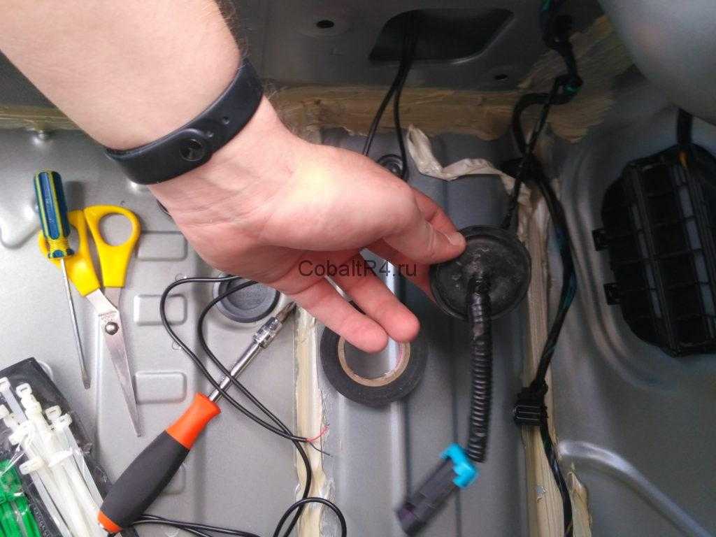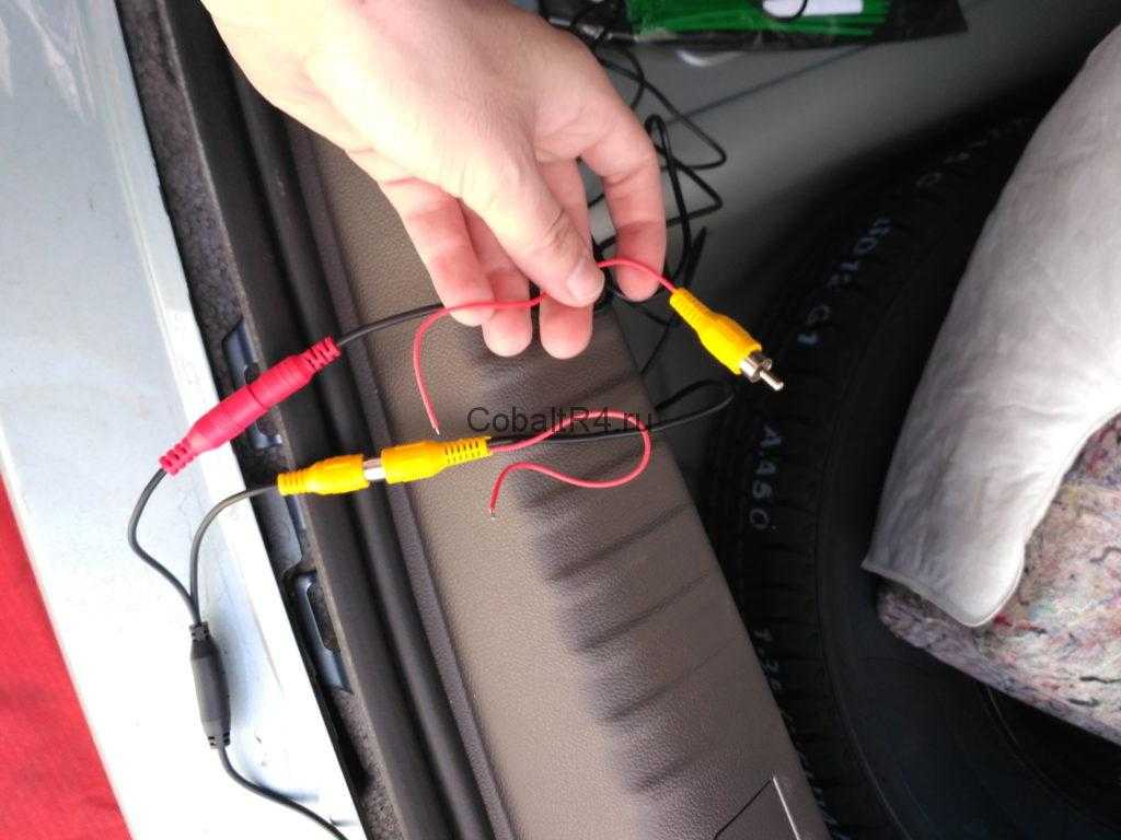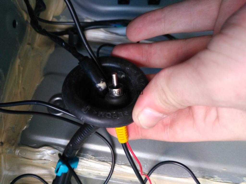 Я заморачиваться не стал, дальше провод кинул под водительский коврик и вывел сразу на монитор. В таком режиме больше года проездил, пока не купил магнитолу, на которую вывел камеру и спрятал провод видео-сигнала в районе руля и приборки.