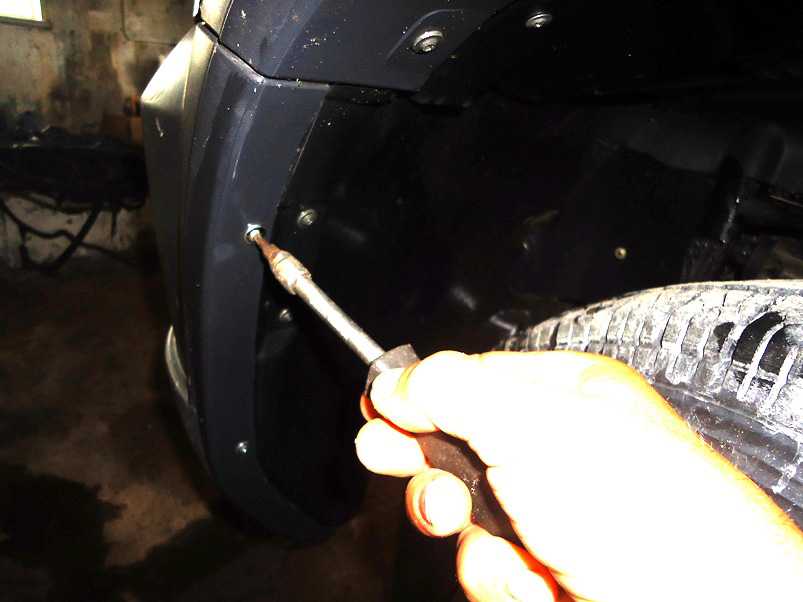 Крестообразными отвертками достаются крепления слева и справа, отсоединяются подкрылки