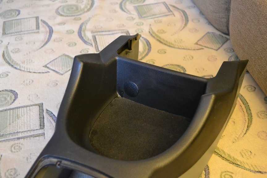 - Поддеть пластиковой отверткой гнездо подстаканника и вынуть деталь из посадочного гнезда.