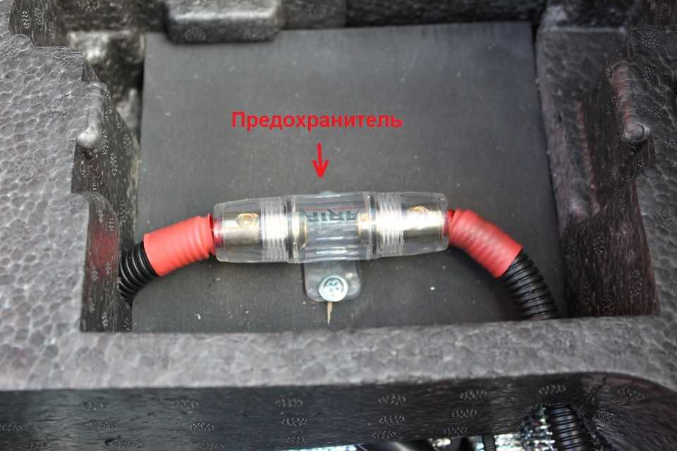 Провода питания, особенно “плюс”, должны быть защищены чем-нибудь, к примеру гофрой. По крайней мере должна быть защищена та часть, которая будет находиться в моторном отсеке. Также на плюсовом проводе нужно установить предохранитель как можно ближе к аккумулятору. Можно купить уже готовый провод с установленным предохранителем. Его номинал можно определить, узнав максимальную силу тока, которая потребляется усилителем, и на всякий случай добавить 5 ампер.