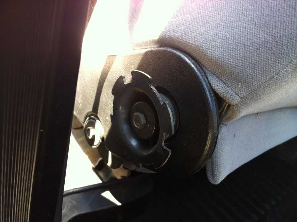 - Снимаем пластиковые заглушки и с помощью торцевого ключа с трещоткой откручиваем передние и задние болты крепления сидения.