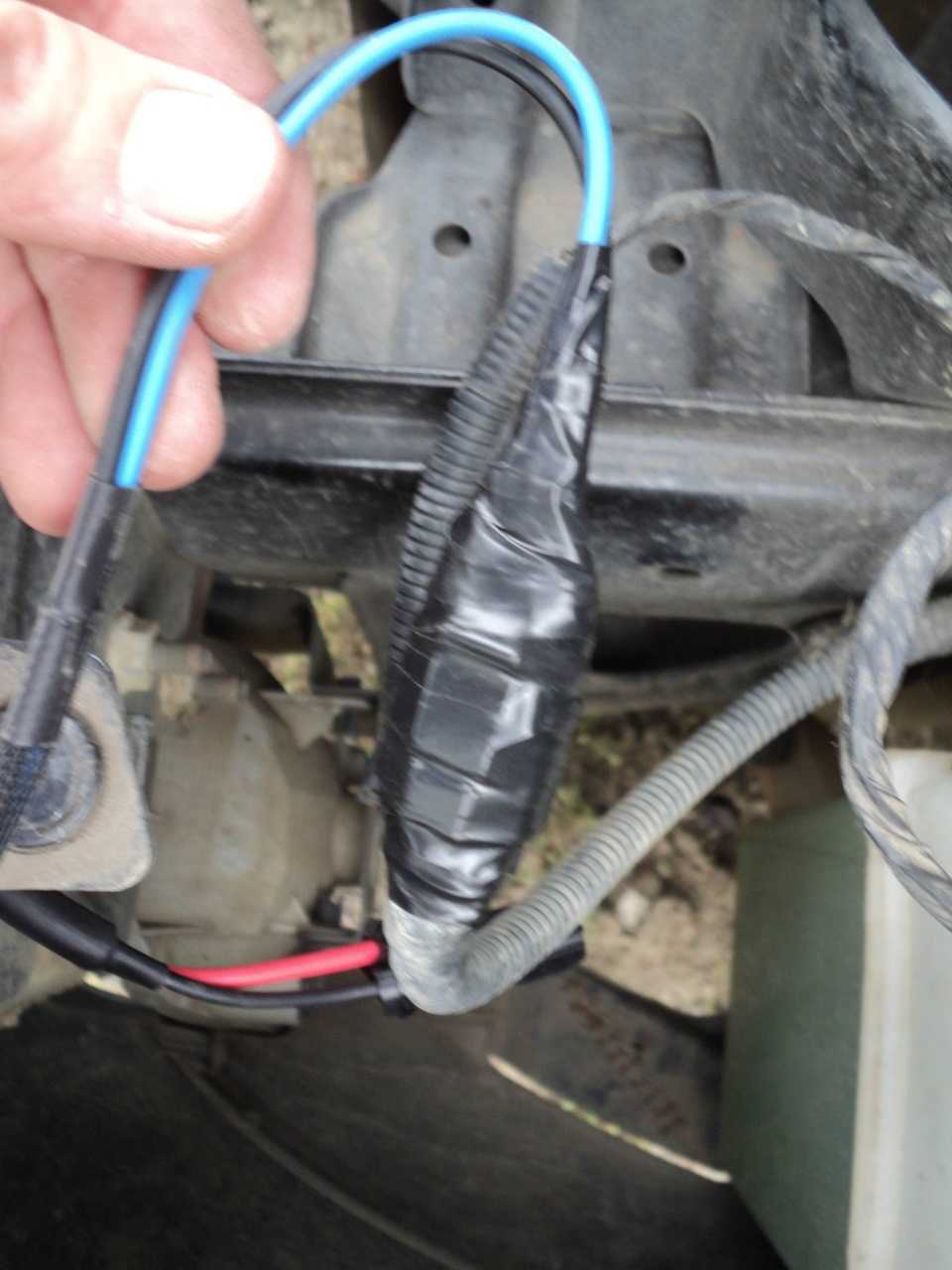8. Далее проводка, вставляем лампу на место, соединяем фишки (перепутать их трудно иначе их не соединить), потом подключаемся к штатной проводке, синий — фиолетовый, черный — черный, втавиляем клеммы и изолируем: