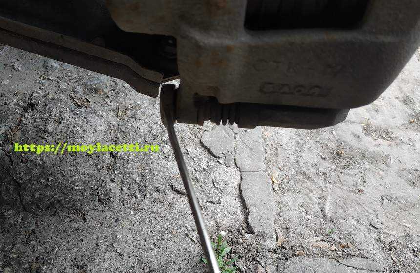 - Накидным ключом открутите нижний болт, удерживающий суппорт.
