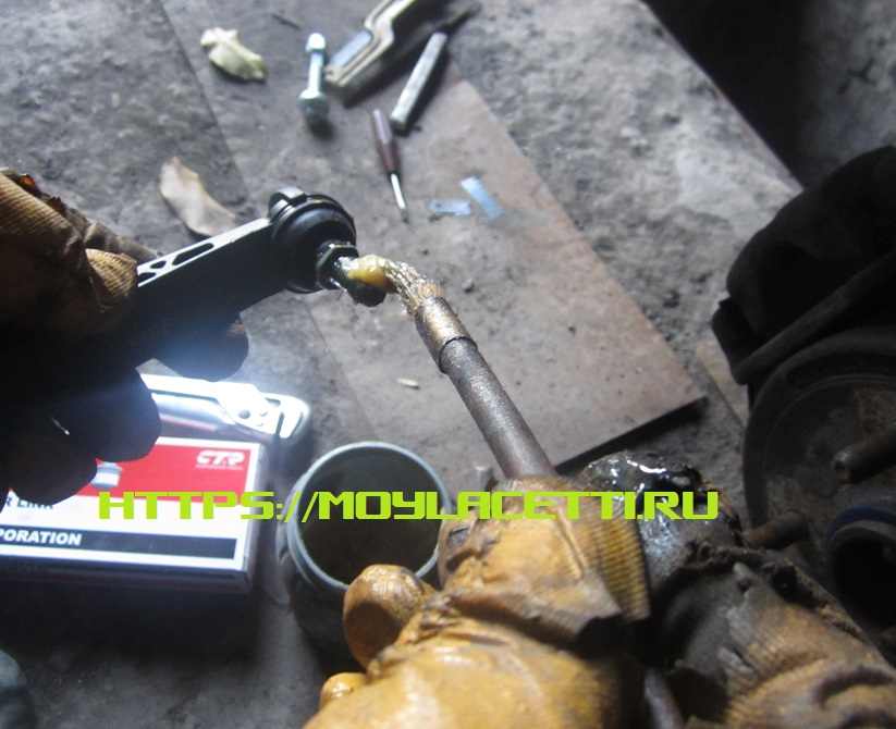С ее помощью гайку просто срезают; Для окончательного демонтажа стойки, придется воспользоваться съемником для рулевых тяг. Если его в наличие нет, то можно сбить старую деталь молотком; Новая деталь ставится на место, гайки затягивают. Желательно, окончательную протяжку производить с помощью динамометрического ключа.