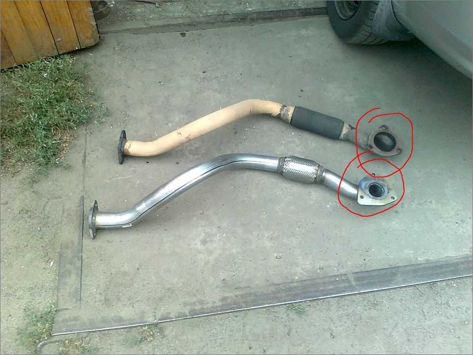 Замена приемной трубы Заменить трубу совсем не сложно, главное чтобы где-то по близости был подъемник или эстакада. Самое сложное в этом процессе — открутить старые гайки. Так что прикупите заранее WD Для начала нужно зачистить головки коллектора от старых прокладок и ржавого налета.