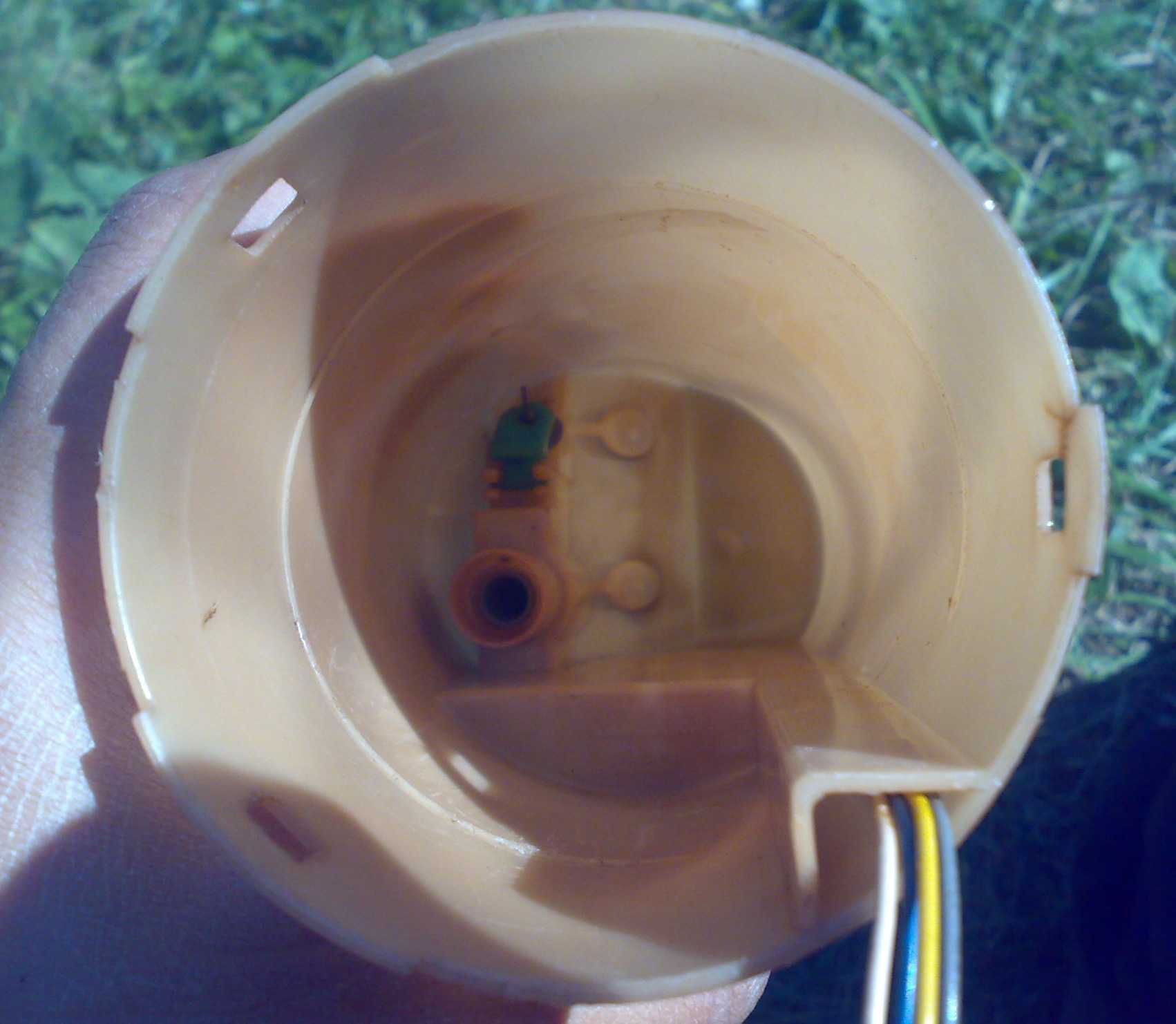 Сначала открываем верхнюю крышку колбы, она не сильно много обзора дает, но ничего пытаемся открыть. Засовываем один крючек во внутрь колбы, этот крючек за что нибудь цепляем, и потихоньку с силой тянем, как чуть двинется меняем положение, когда по кругу пройтись внутренняя часть поднимется не много нужен будет второй крючек, чтоб без перекосов достать внутреннюю часть колбы. А также нужно отсоединить фишку проводов, а то не даст разобрать окончательно. И когда все получается, можно радоваться, так как это самый сложный этап при замене сеточки в бензонасосе.