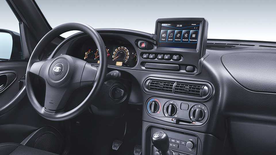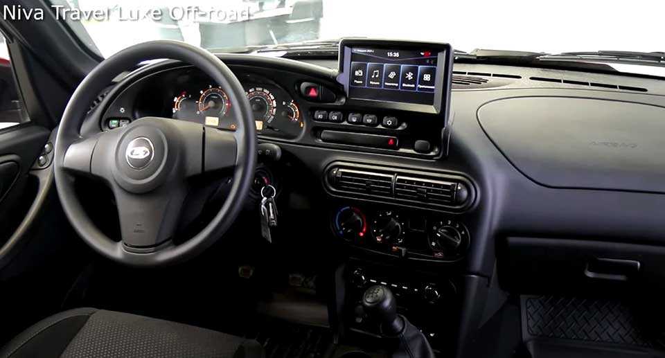 В отличие от внешнего вида, салон новой Lada Niva Travel на 99,9% остался без изменений. Даже слово Niva на центральной консоли осталось написано шрифтом General Motors. Как и в Шниве, в новой Тревел, в зависимости от комплектации передняя панель будет немного меняться. В частности для большинства модификаций это будет обычная передняя панель с крутилками и привычными кнопками. В топовой версии Лада Трефел по центру панели появится дисплей мультимедийки, выполненный в виде планшета.