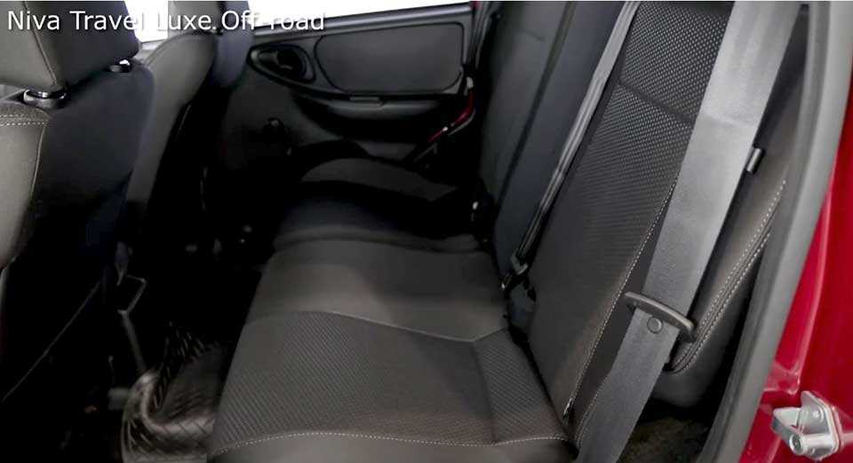 Что касается самого интерьера Lada Niva Travel, то по стандарту он рассчитан на 5 посадочных мест по формуле 2+3. Обшивка сидений доступна только в ткани черного цвета. Изменения скорей будут в расцветке потолка, в стандартных версиях он светлого оттенка, а в версии Off-Road потолок будет черного цвета. Регулировка передних сидений доступна в 4-ох направлениях, а в топ версии водительское в 6-ти направлениях. Второй ряд сидений можно сложить в пропорции 60/40, тем самым увеличив пространство багажника.