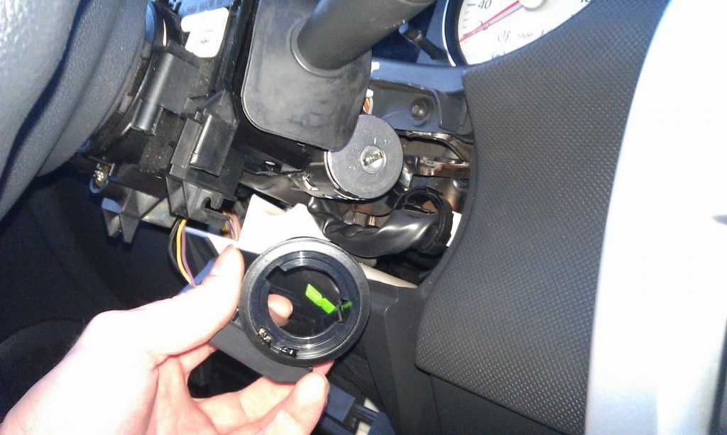 - Шлейф на две жилы используется для подсоединения наружной катушки. Монтаж этого компонента обычно осуществляется рядом с замком зажигания, для этого потребуется снять с него облицовку.